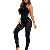 จั๊มสูทบอดี้คอนเซ็กซี่สำหรับผู้หญิง สีดำ ผ้าลูกไม้ซีทรู ลายเรียบ สำหรับงานปาร์ตี้